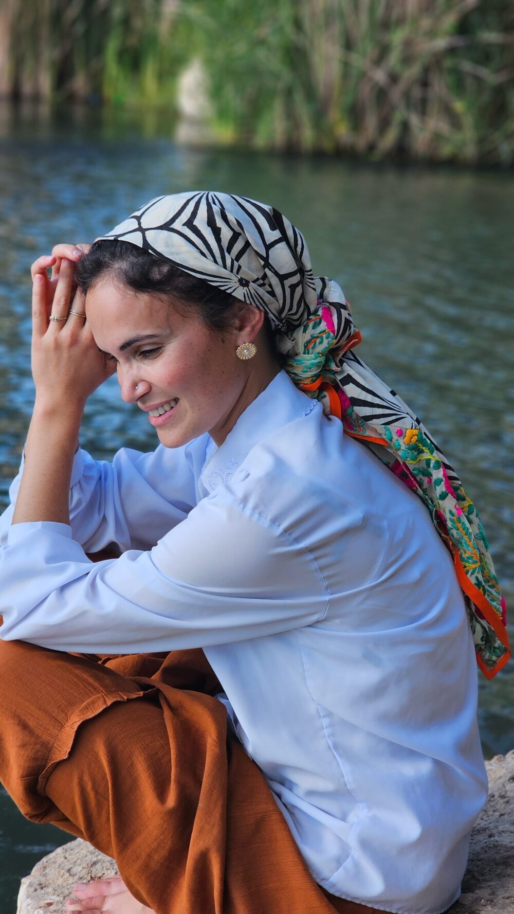 ניתן ללבוש באורך מלא, או לקפל למשולש קטן יותר, כמה שאת אוהבת..
