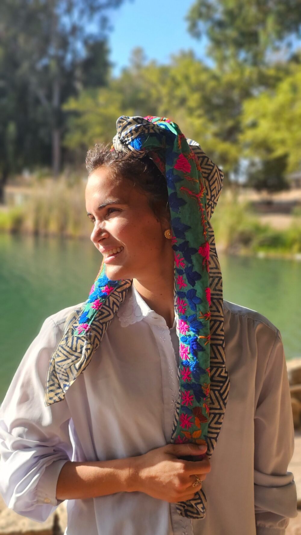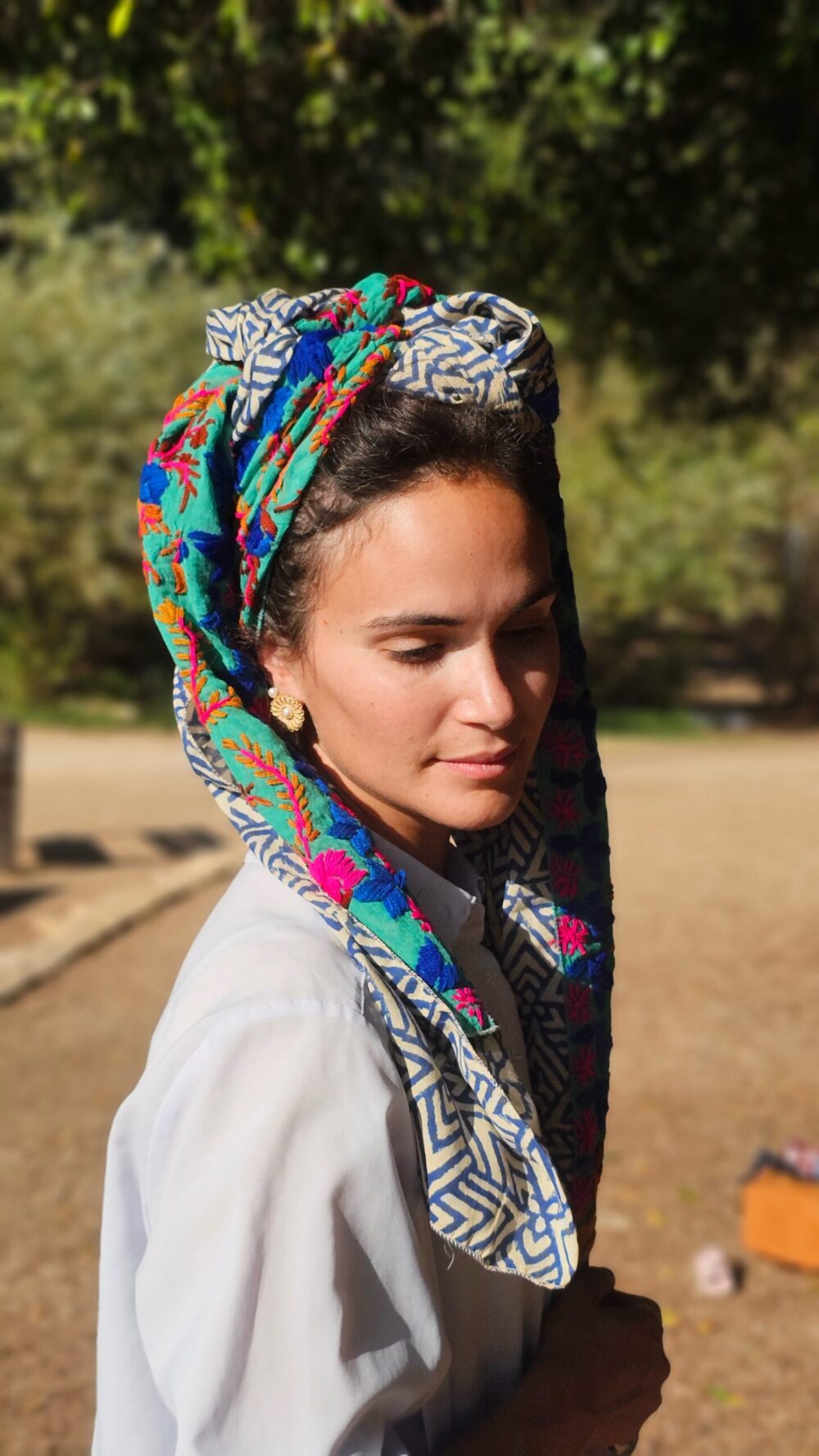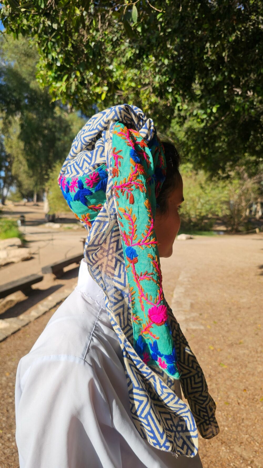 אורך הצעיף 2.10 מ׳ על 0.50 ס״מ.